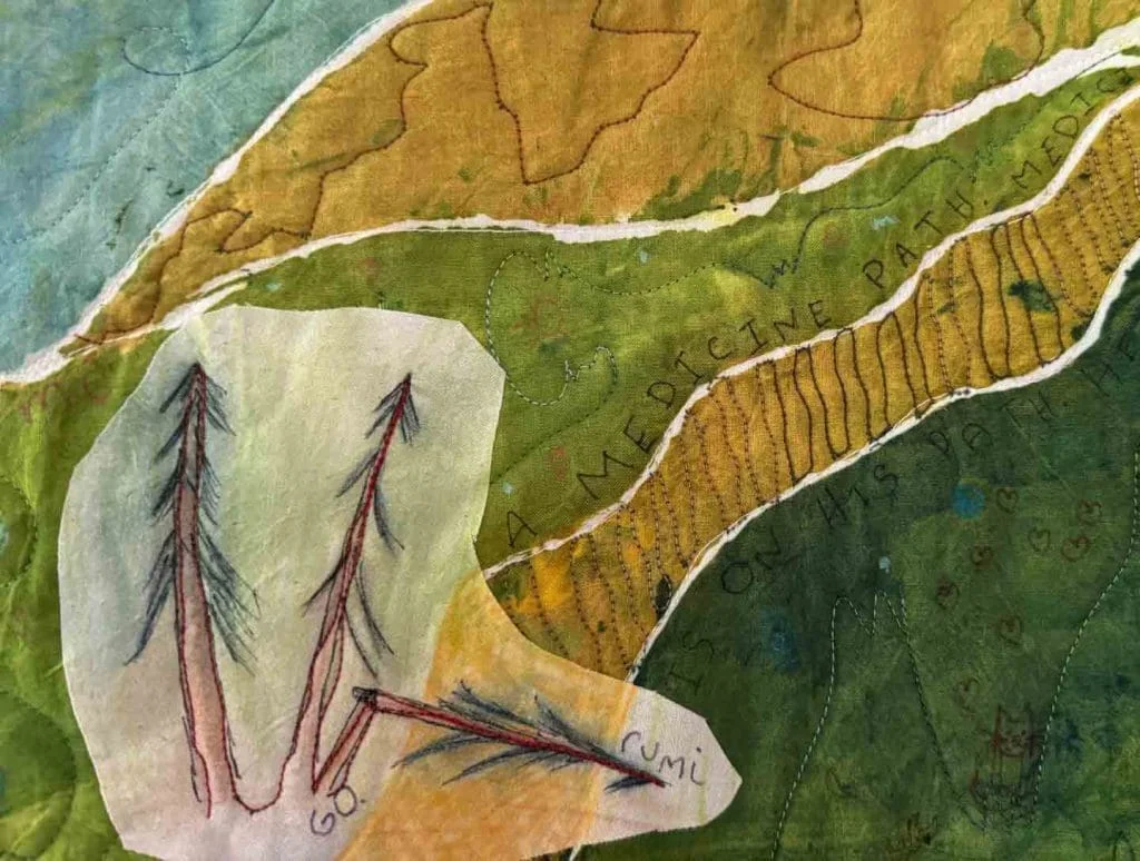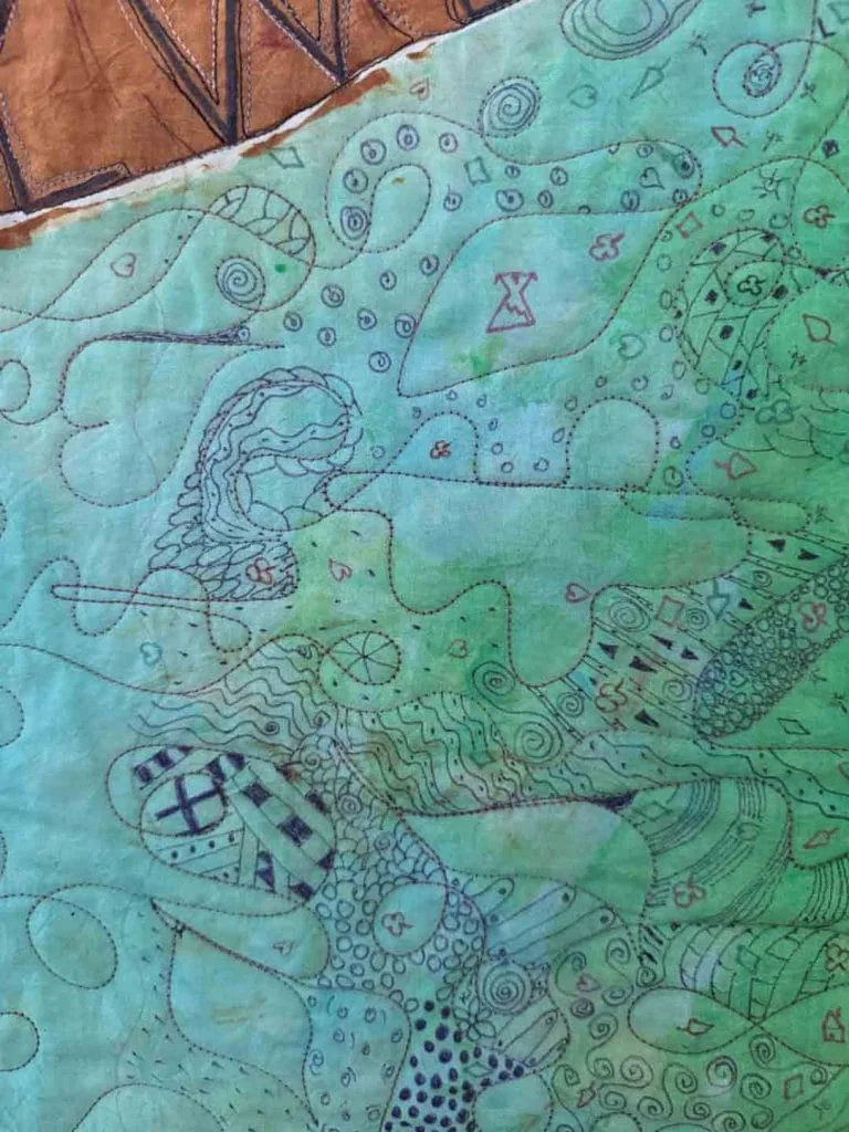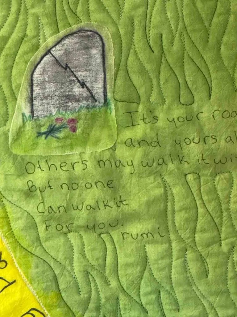 Death Wisdom is an exploration of my journey in living through the death of my mother and the Year of Grief that followed. These stories are mine, of course, but they’re Universal, too. Death and Grief offer us a whole new way to look at the world. This series of fiber art pieces is about finding some of those discoveries I could only find amid the radical changes that resulted from Death’s presence in my life.